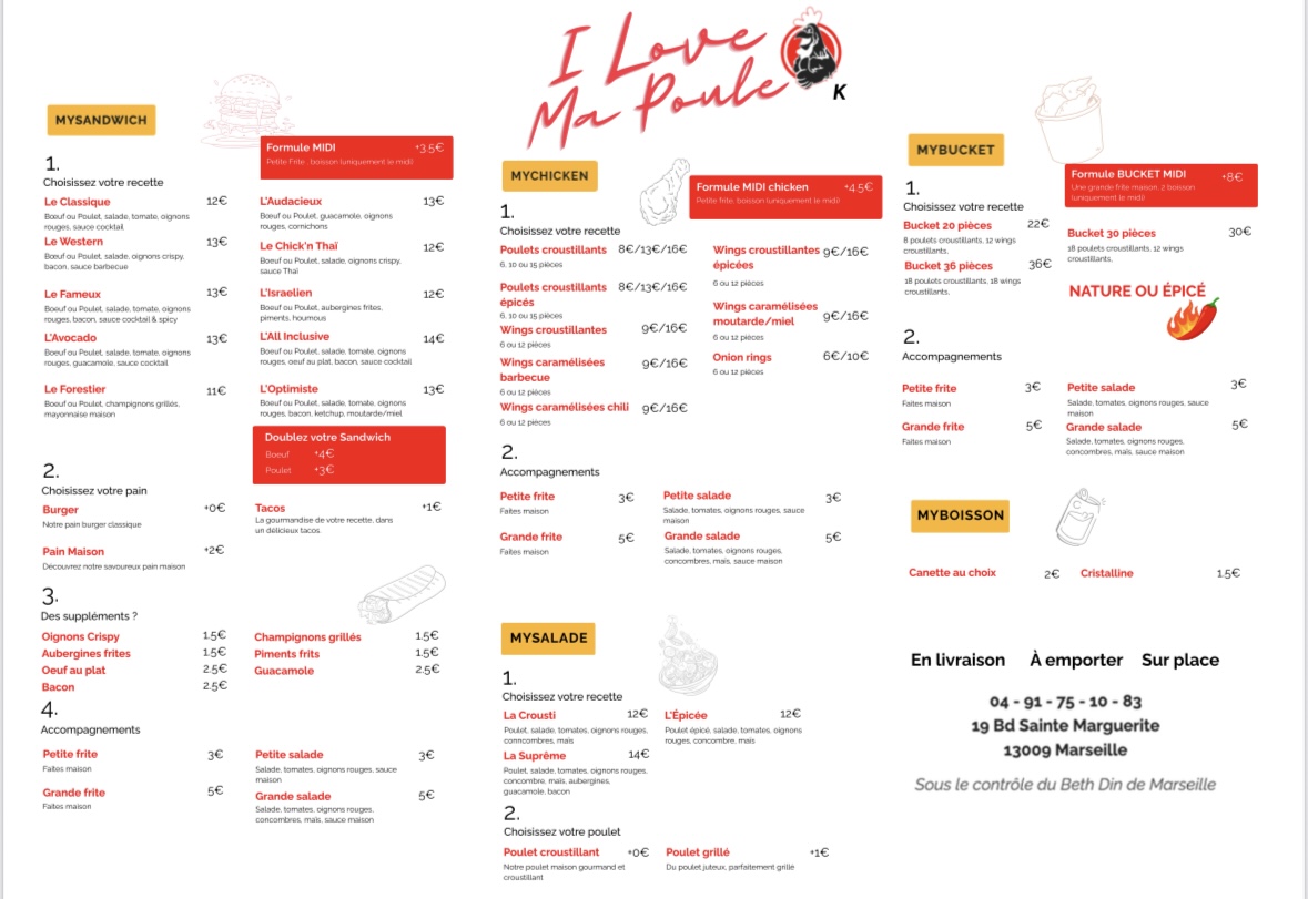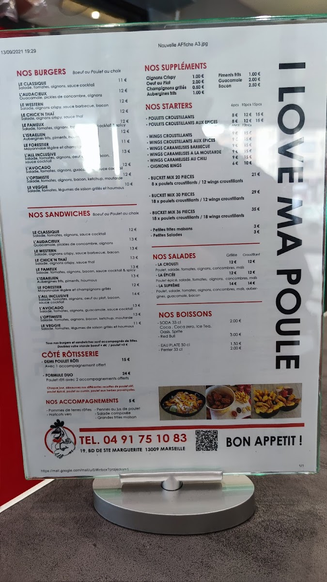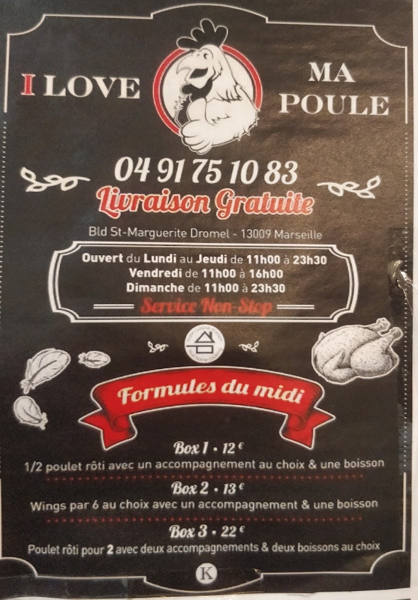 Welcome to I love ma poule, a charming fast food gem nestled in the heart of Marseille at 19 Bd de Sainte-Marguerite. Renowned for its homemade chicken and fries, this spot delivers a delightful culinary experience that delights both locals and visitors alike.